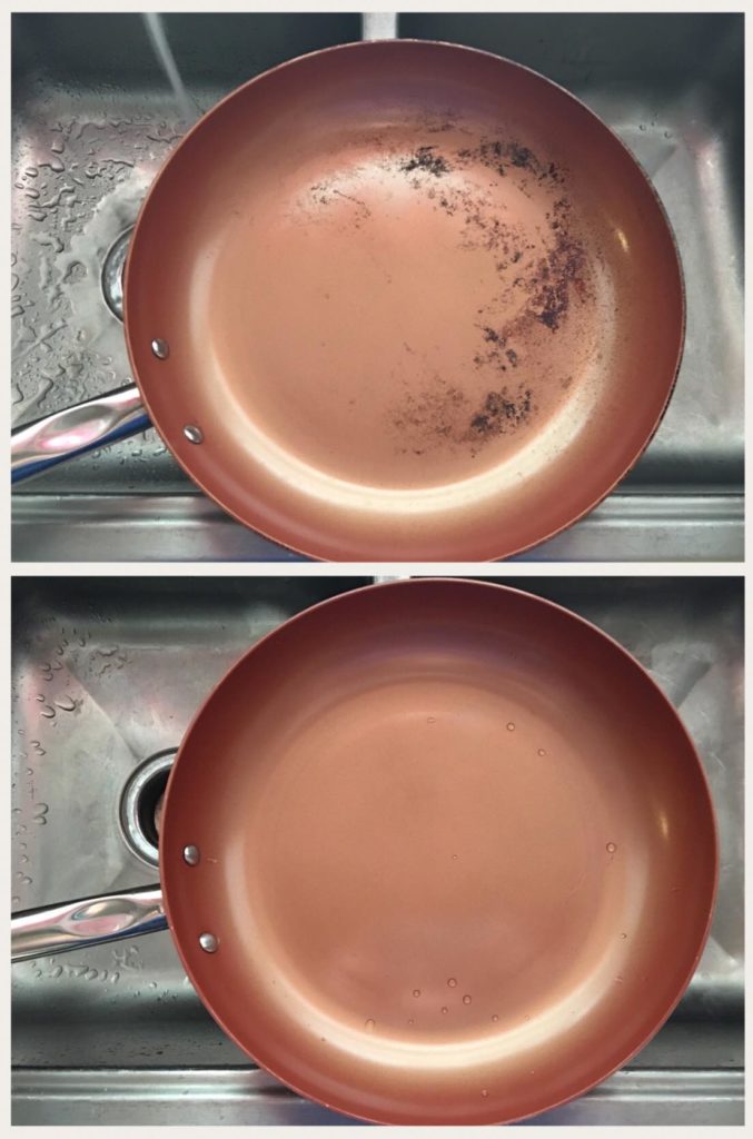 If you’ve been to my house in the last two months, then you’ve seen this “beauty” sitting on my stove in all her burnt on glory. I’ve washed it daily with zero success until today when I caved. It’s usable again!” —  Shelly T